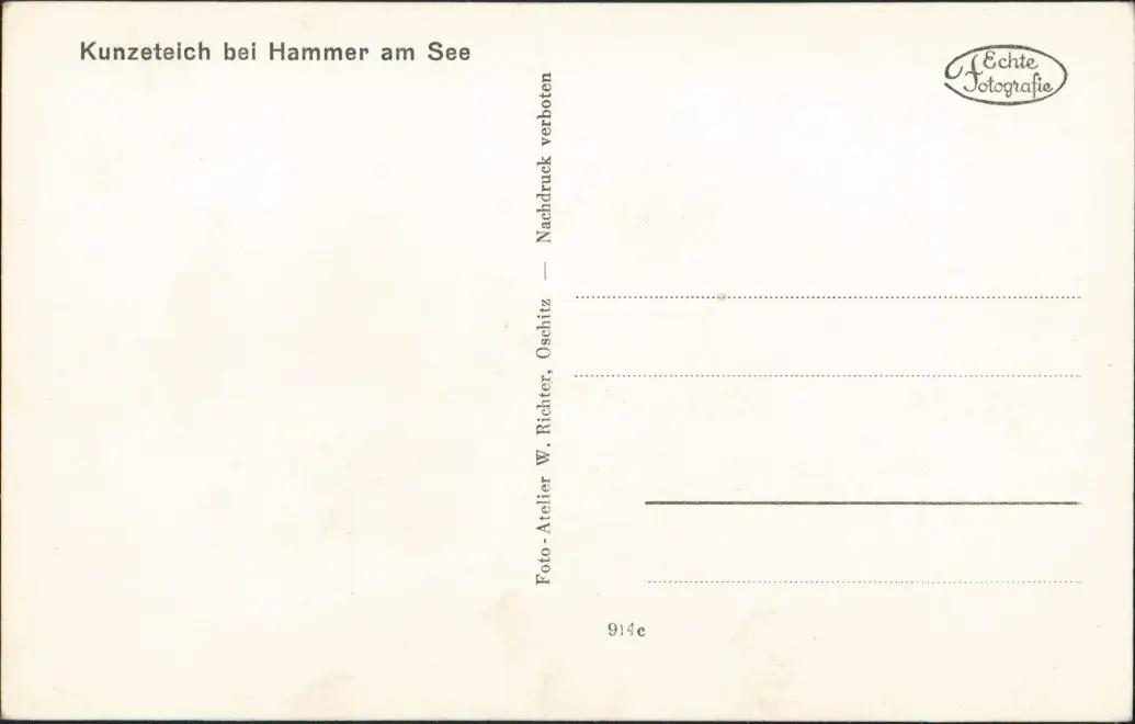 Postcard Hammer am See Hamr na Jezeře Kunzeteich 1932