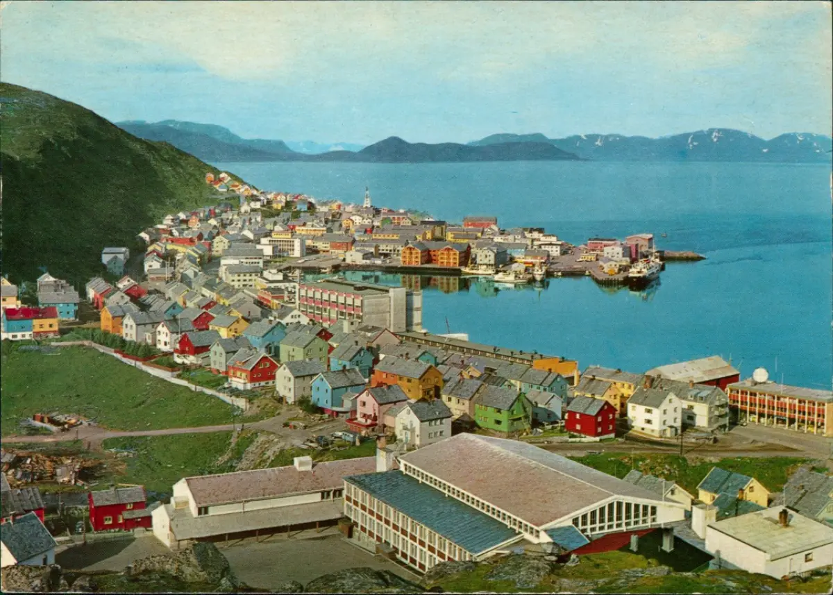 Postcard Hammerfest Panorama-Ansicht aus der Vogelschau-Perspektive 1967