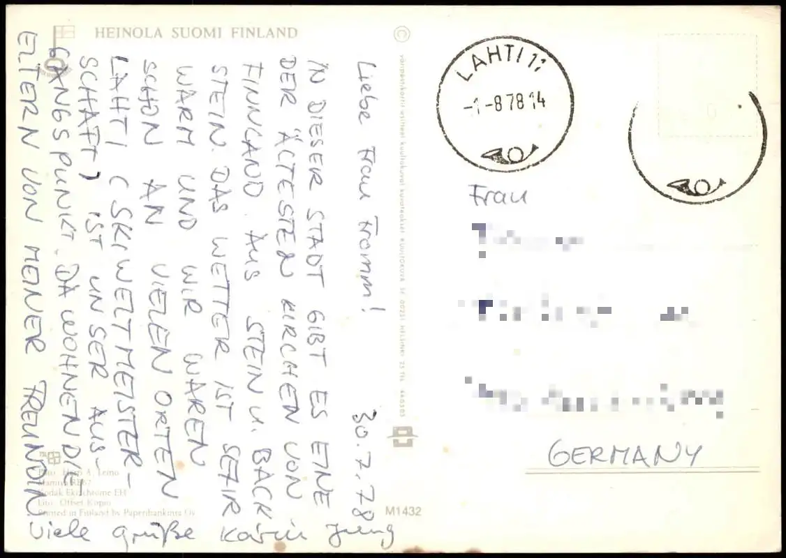 Postcard Heinola 3 Bild Stadtansichten Soumi Finnland 1978