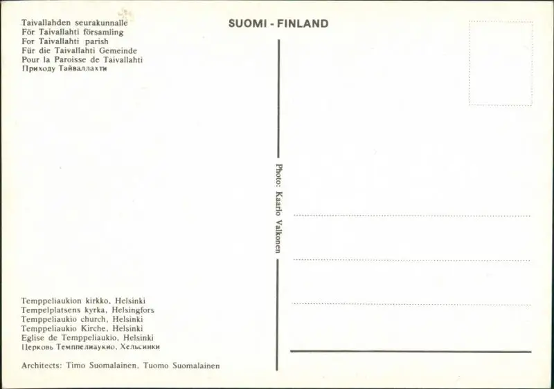 Postcard Helsinki Helsingfors Temppeliaukion kirkko Kirche Church 1970
