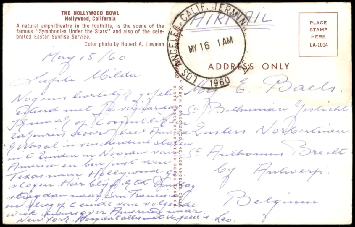 Postcard Hollywood THE HOLLYWOOD BOWL, California 1960