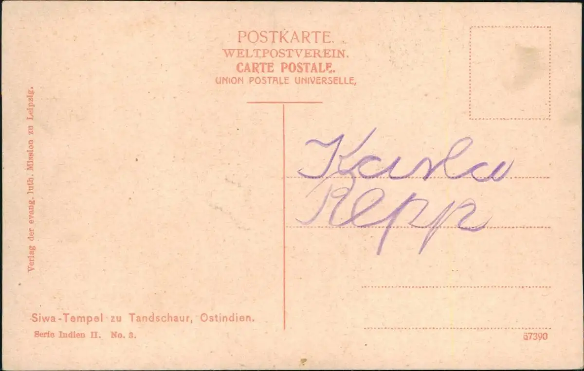 Postcard .Indien Siwa-Tempel zu Tandschaur Ostindien India 1912