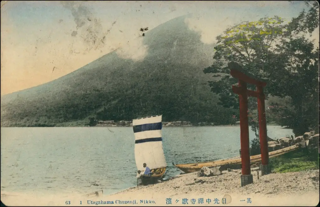 Postcard Japan 1 Utagahama Chuzenji, Nikko. きかは 便 郵 1908