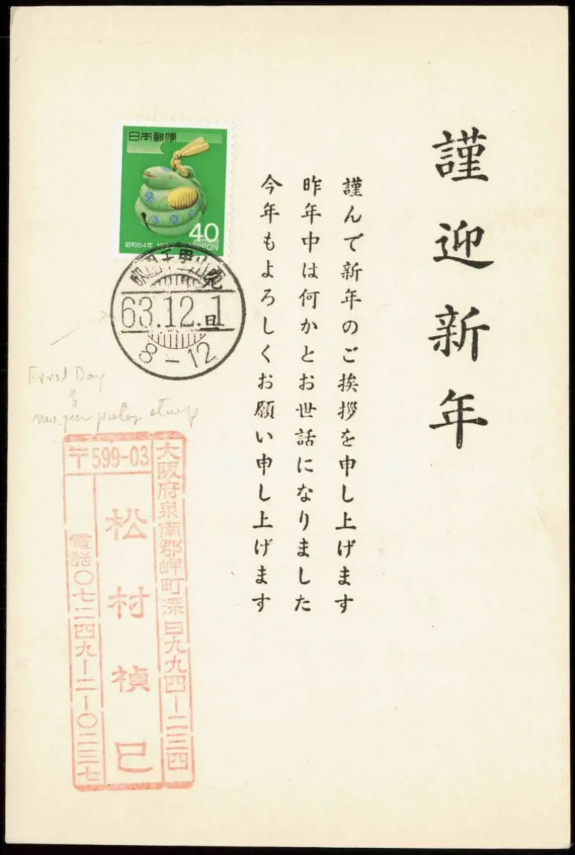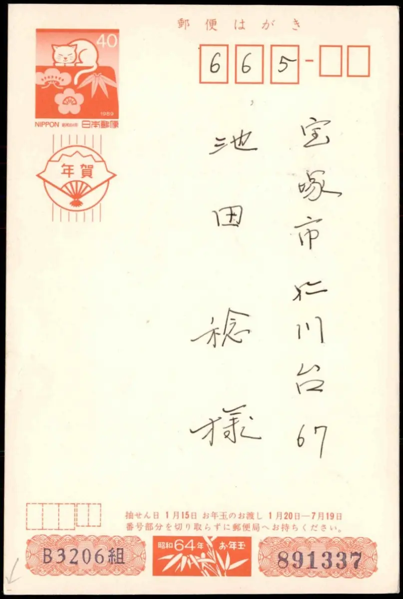 Postcard Japan Japan Nippon 日本 Ganzsache Katze Text Neujahr 1989 gel. Stempel