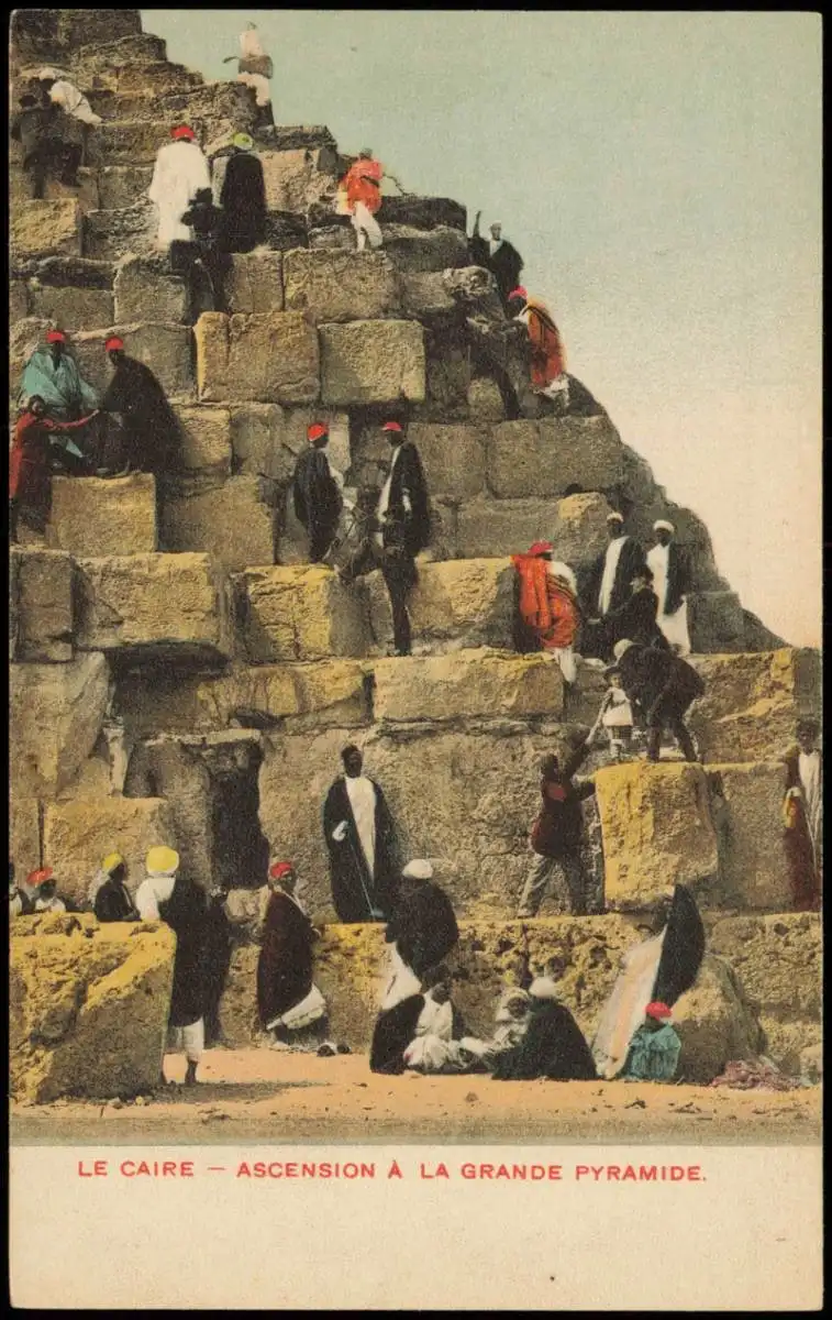 Postcard Kairo القاهرة ASCENSION A LA GRANDE PYRAMIDE. 1906 Ägypten Egypt