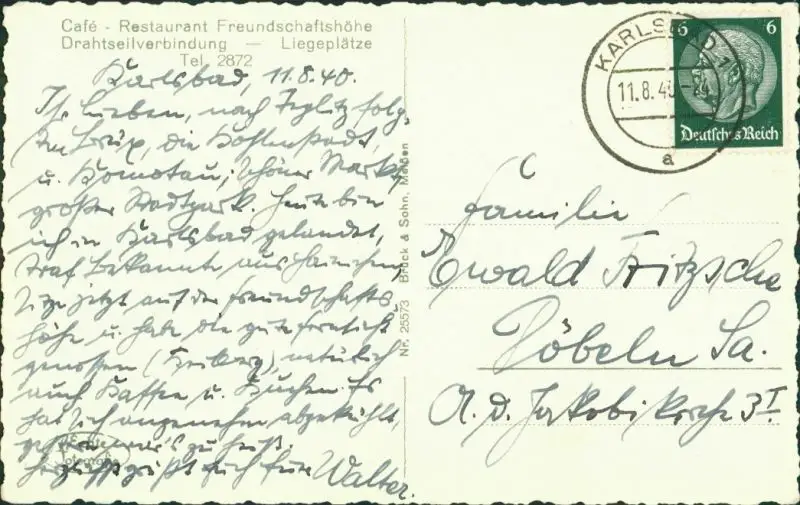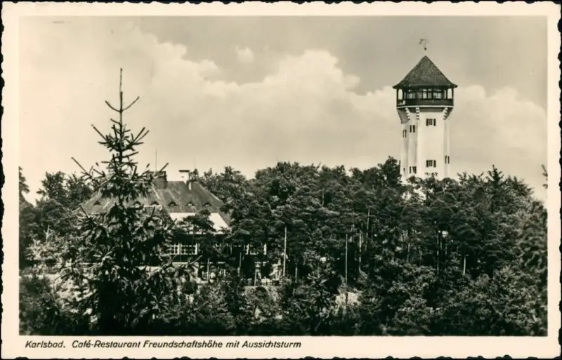 Postcard Karlsbad Karlovy Vary Cafe Restaurant Freunschaftshöhe 1937