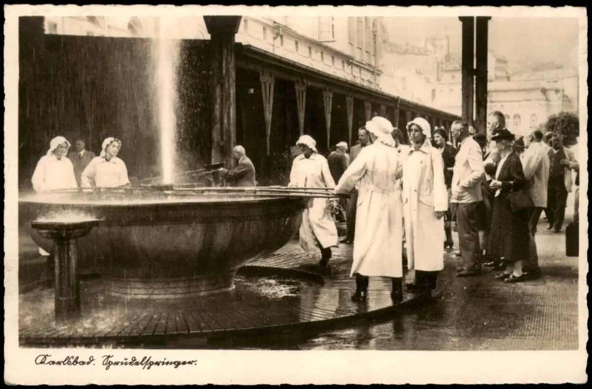 Postcard Karlsbad Karlovy Vary Frauen am Sprudel 1930