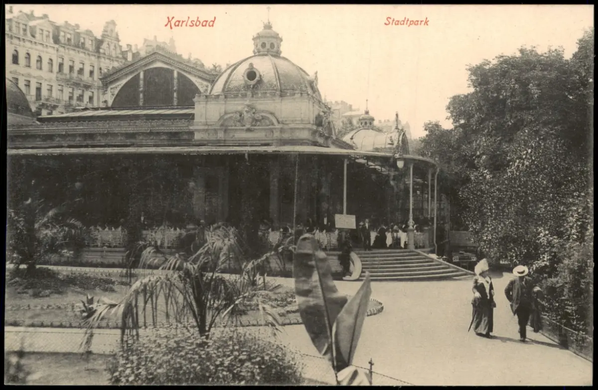 Postcard Karlsbad Karlovy Vary Stadtpark Anlagen 1914