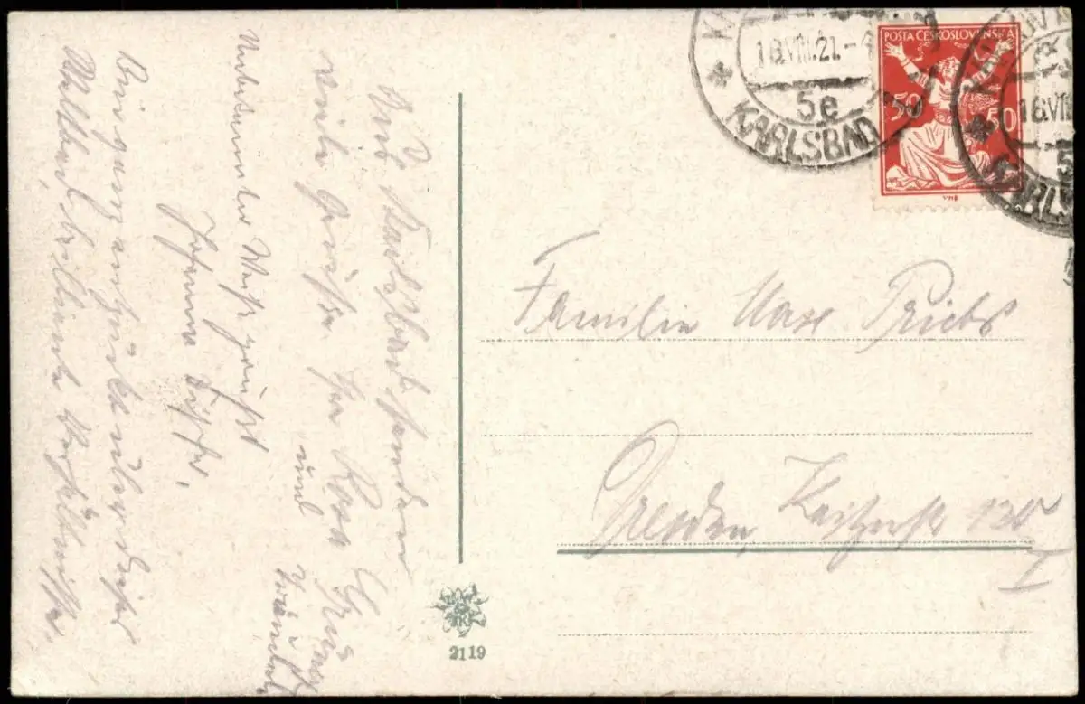 Postcard Karlsbad Karlovy Vary Teilansicht mit Café Pupp 1921
