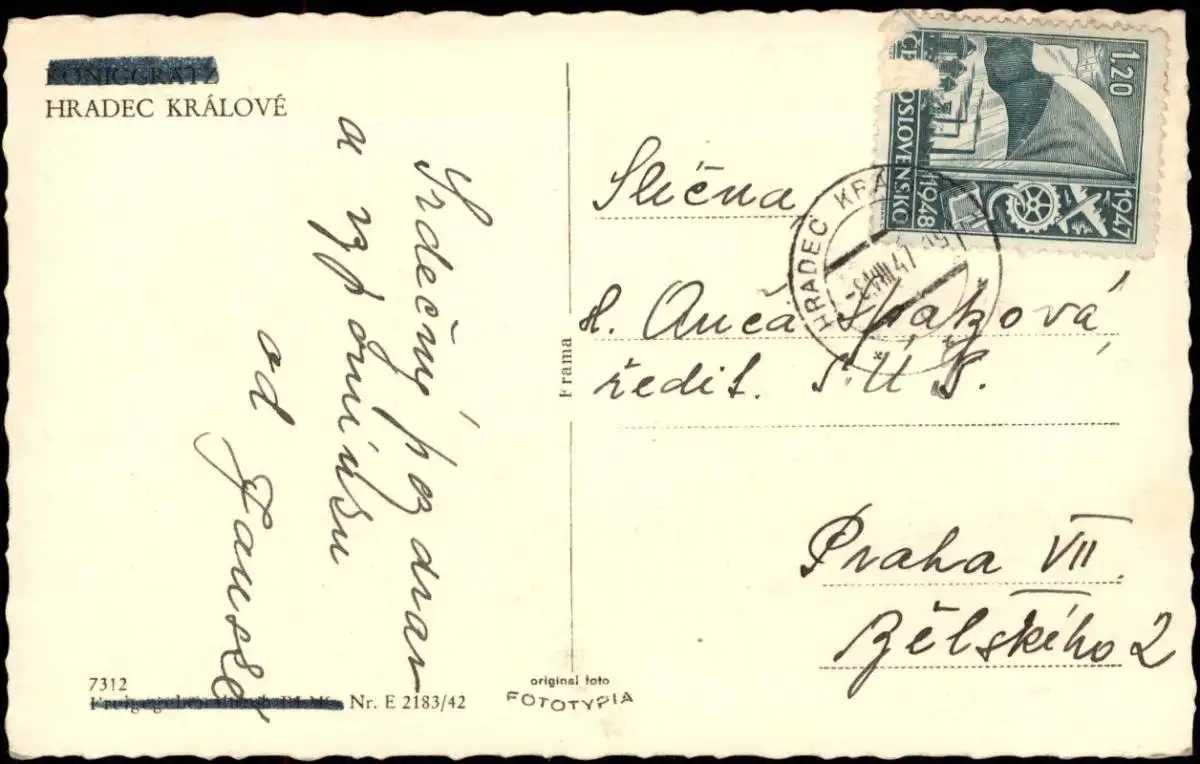 Postcard Königgrätz Hradec Králové Straßenpartie und Stadt 1940