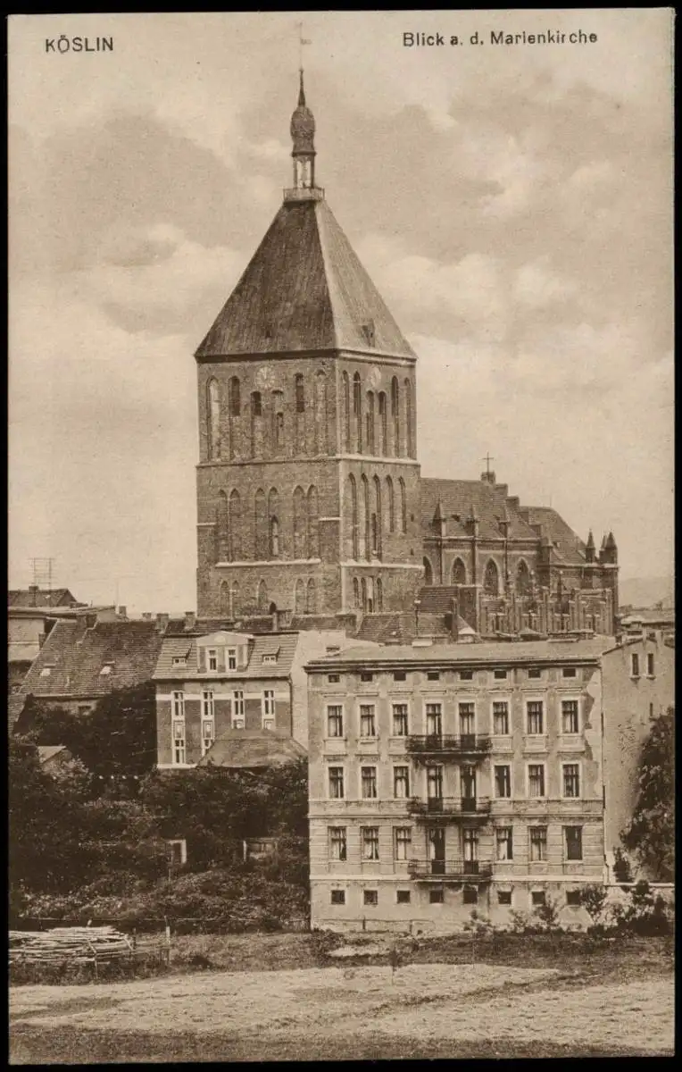 Postcard Köslin Koszalin Blick a. d. Marienkirche - Häuserfassade 1918