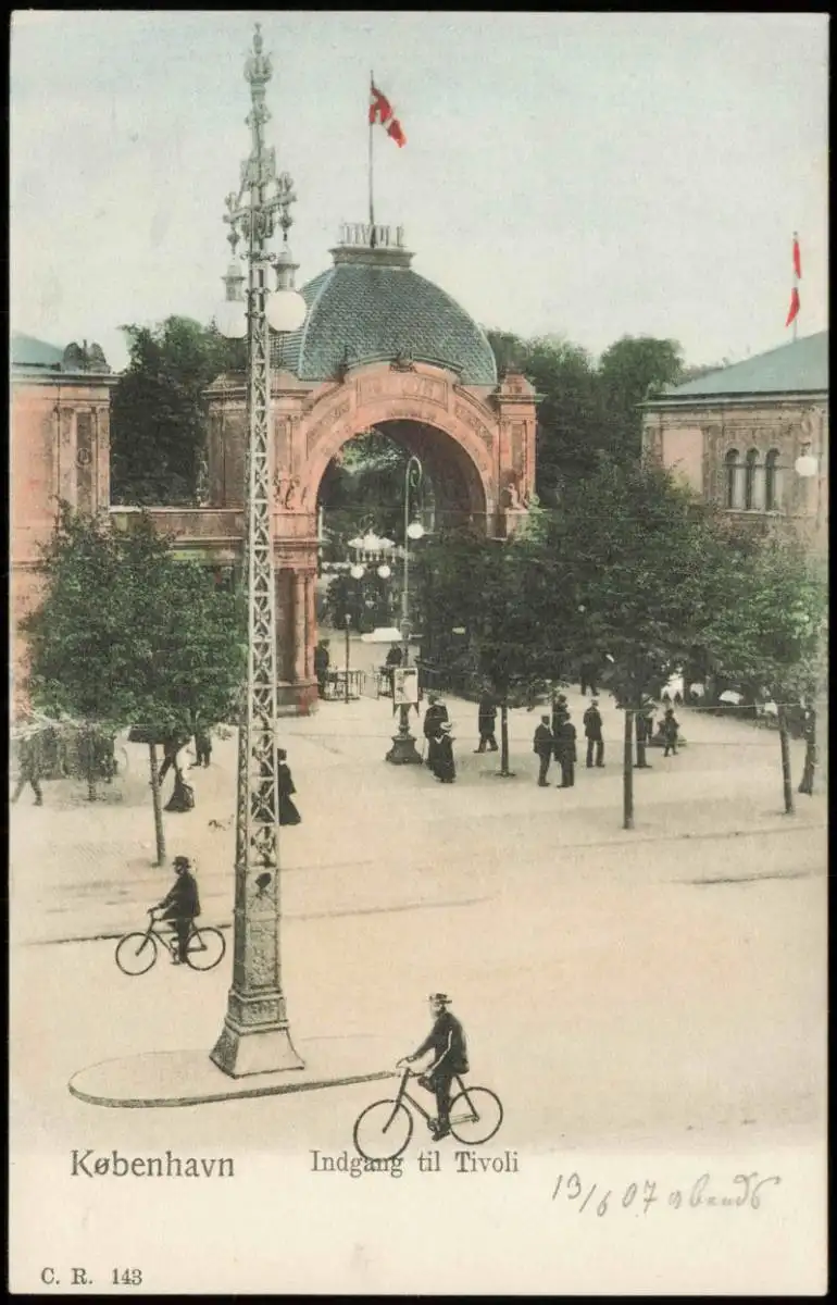 Postcard Kopenhagen København Indgang til Tivoli Fahrradfahrer 1912