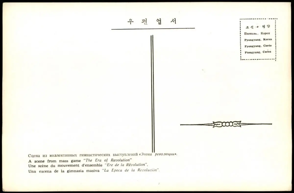 Postcard Korea Scene from mass game "The Era of Revolution" 1970