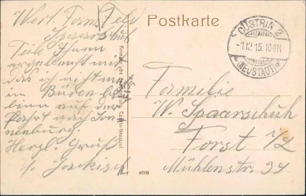 Postcard Küstrin Kostrzyn nad Odrą Marktplatz 1915