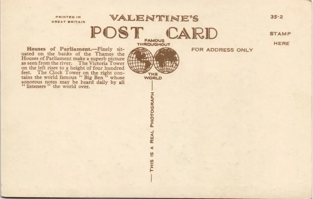 Postcard London Houses of Parliament Parlamentshaus, Big Ben 1935