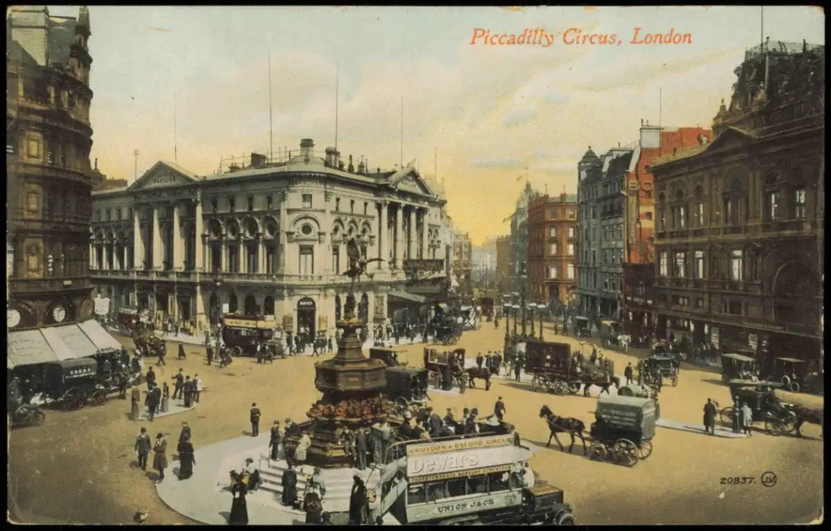 Postcard London Piccadilly Circus, Straßen-Ansicht, City-View 1910