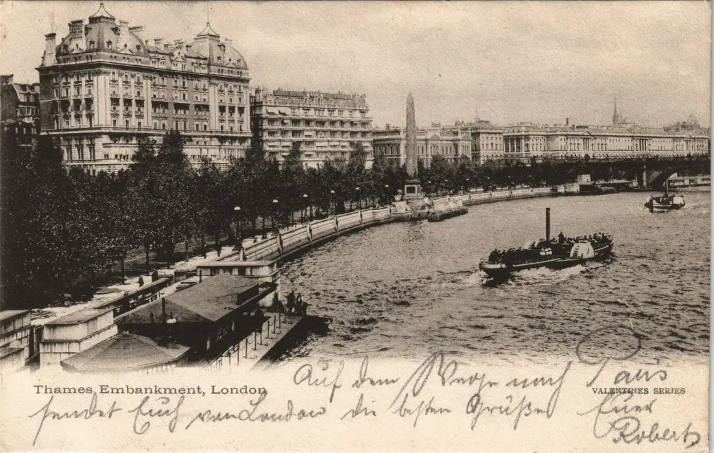 Postcard London Thames Embankmant - Dampfer Steam boat 1912