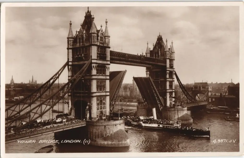 Postcard London Tower Bridge, durchfahrender Dampfer 1930