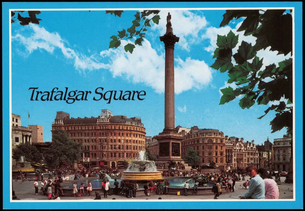 Postcard London Trafalgar Square (belebter Platz mit Leuten) 1980
