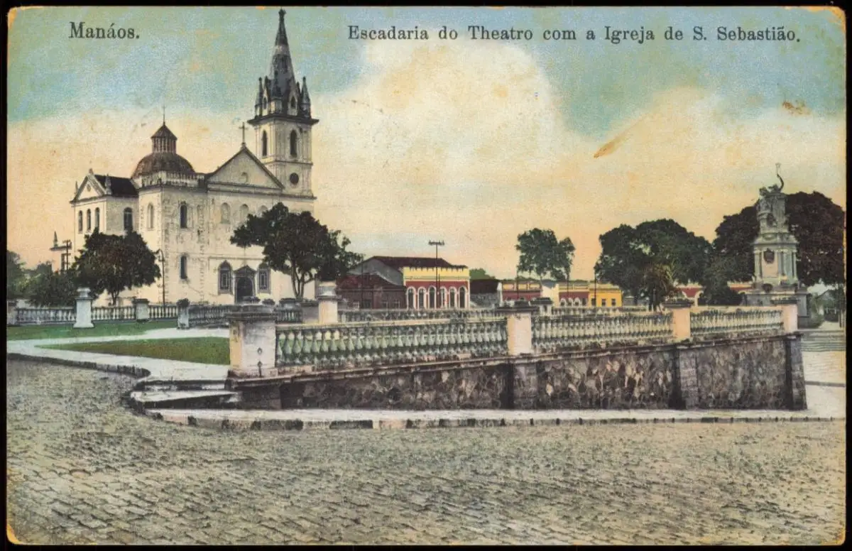 Postcard Manaos Manaus Escadaria do Theatro - Basil Brasil 1910