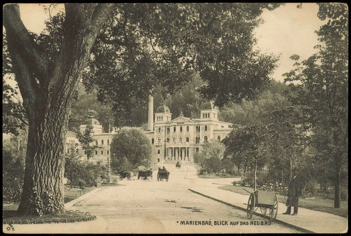 Postcard Marienbad Mariánské Lázně Straßenpartie am Neubad 1928