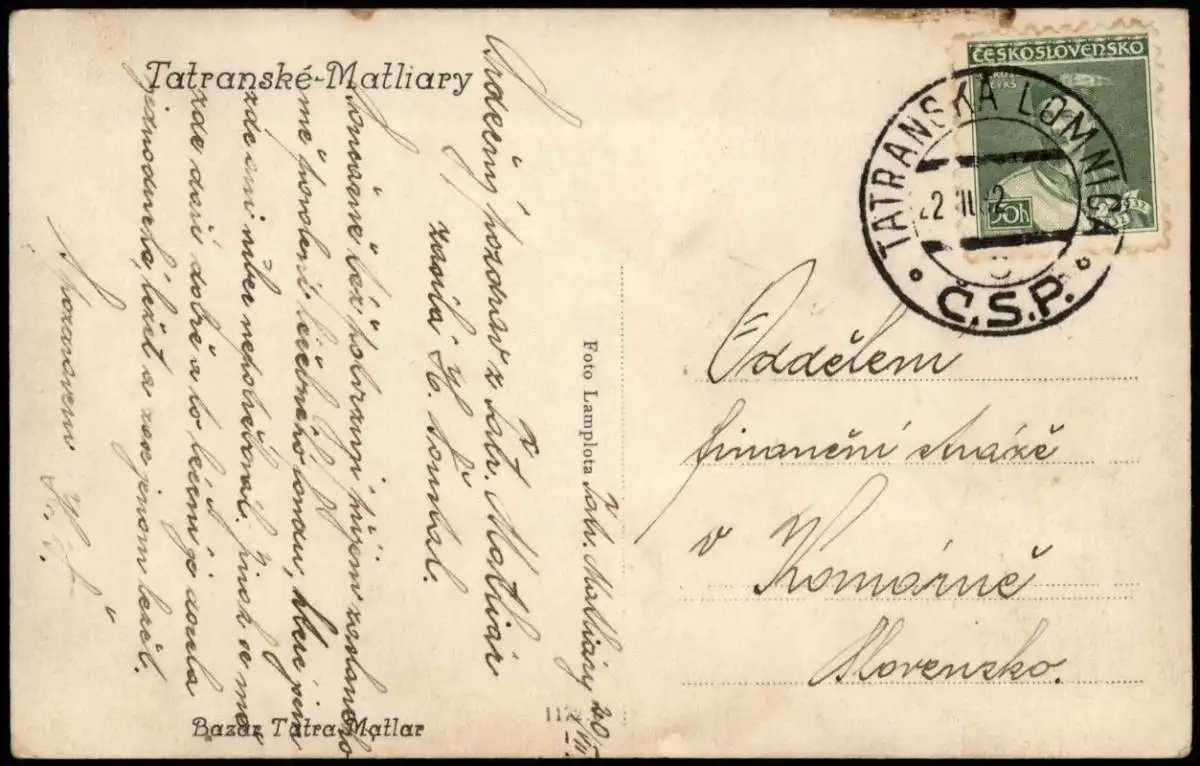 Postcard Matlarenau-Vysoké Tatry Tatranské Matliare Stadtpartie 1928