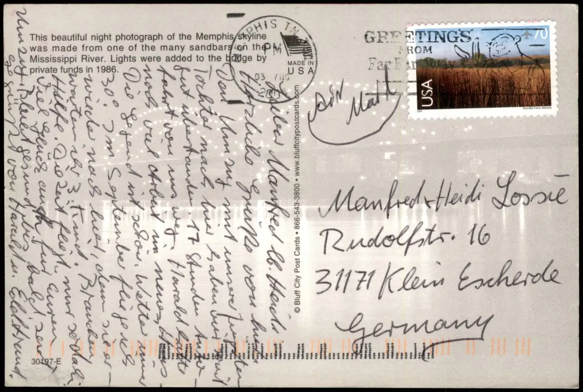 Postcard Memphis Night photograph of the Memphis with skyline 2001