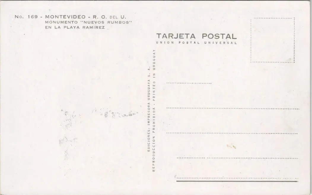 Postcard Montevideo MONUMENTO NUEVOS RUMBOS EN LA PLAYA RAMIREZ 1970