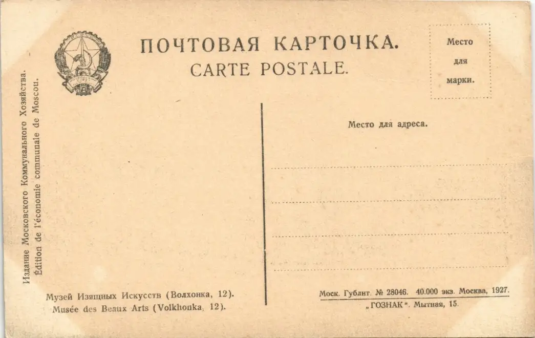 Postcard Moskau Москва́ Musee de Beaux Arts 1927