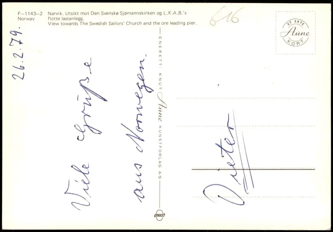 Postcard Narvik Ortsansicht, Utsikt mot Den Svenske Sjømannskirken 1979