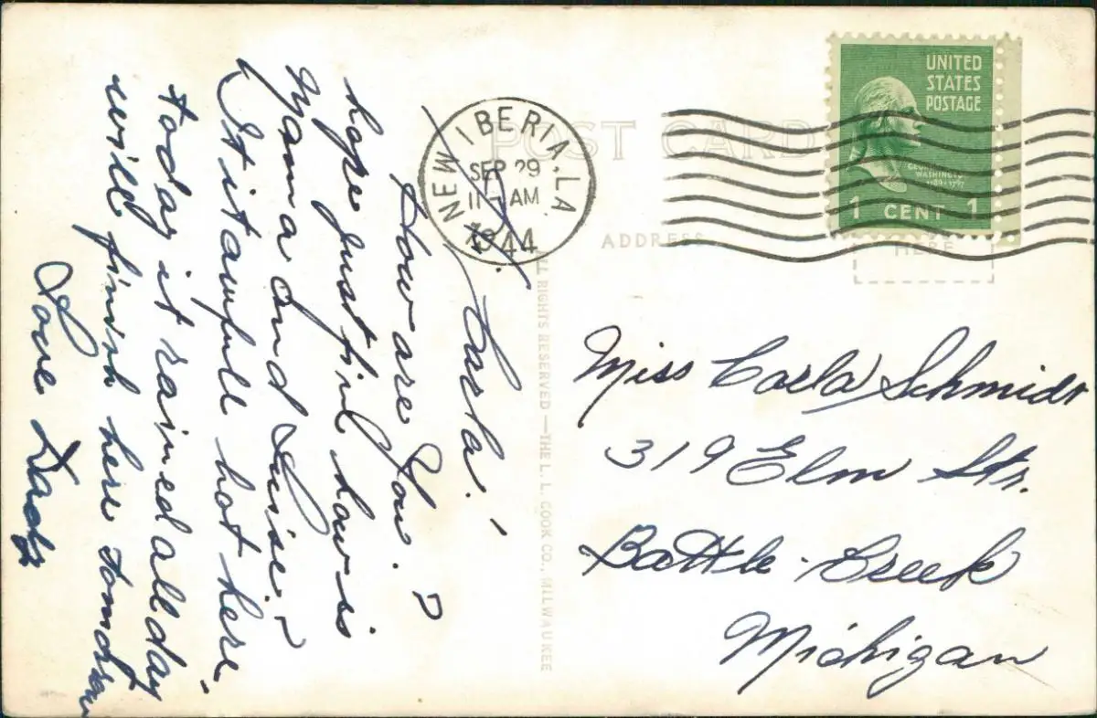 Postcard New Iberia Street view Trees 1929