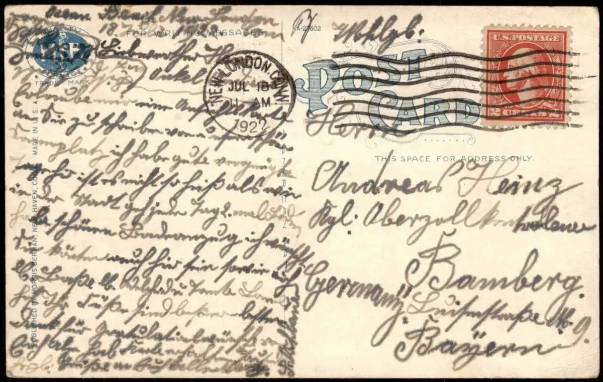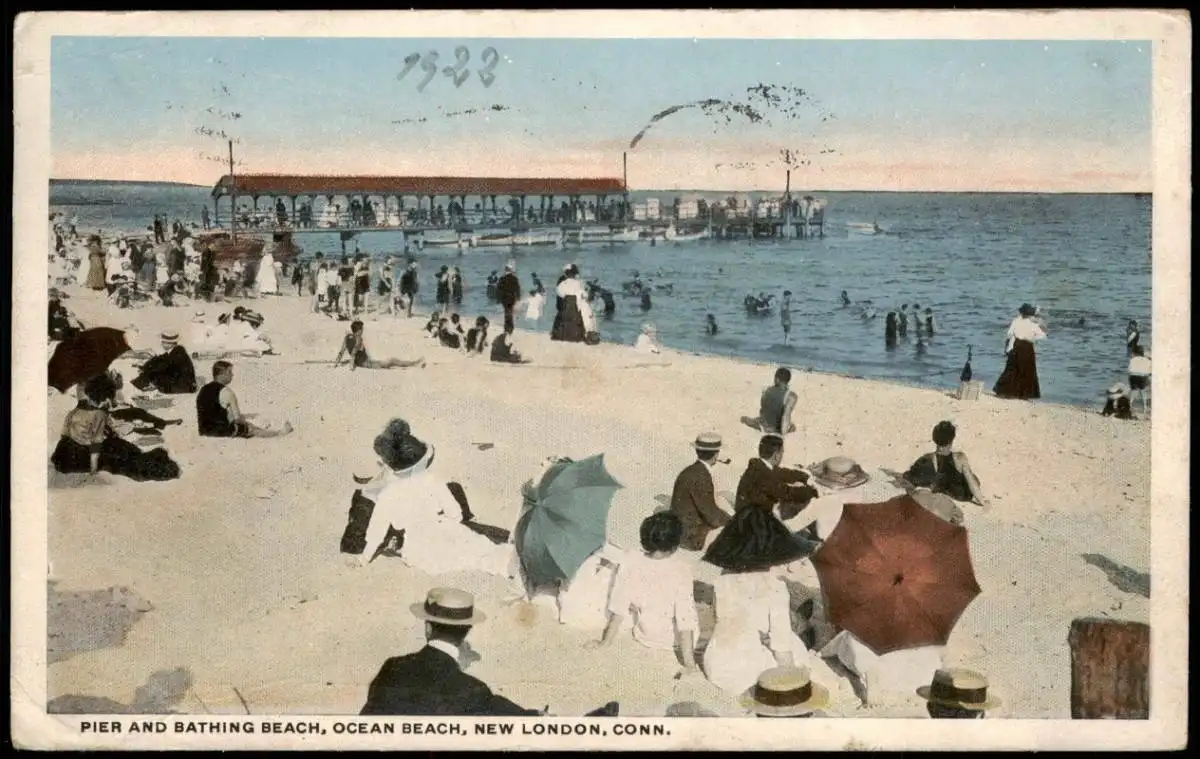 Postcard New London Pier and Bathing Ocean Beach 1922 USA