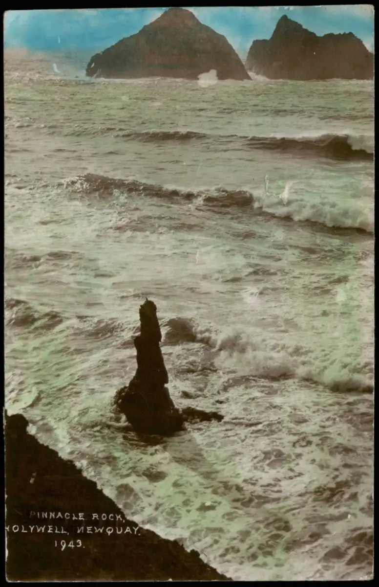 Postcard Newquay PINNACLE ROCK, Holywell 1943