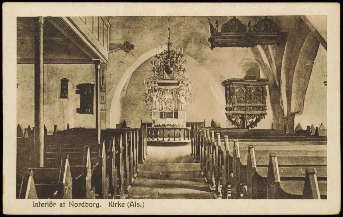 Postcard Nordborg b. Sønderborg Interiör Kirke Als. 1924