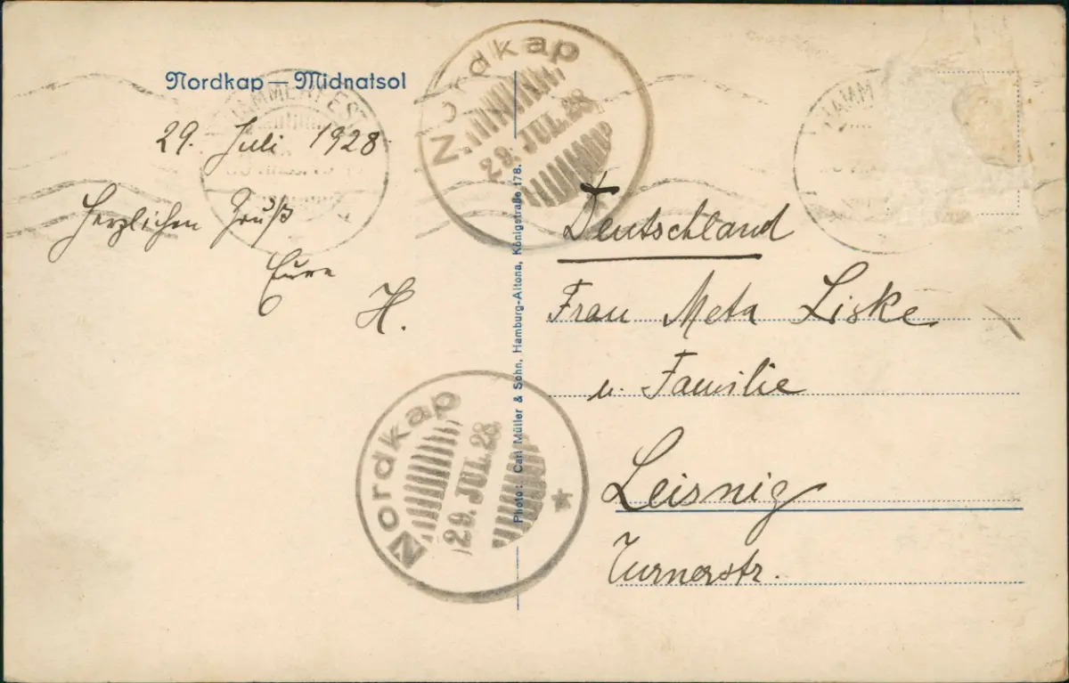 Postcard Nordkap Davvinjárgga Nordkap Mitternachtssonne Midnatsol 1928