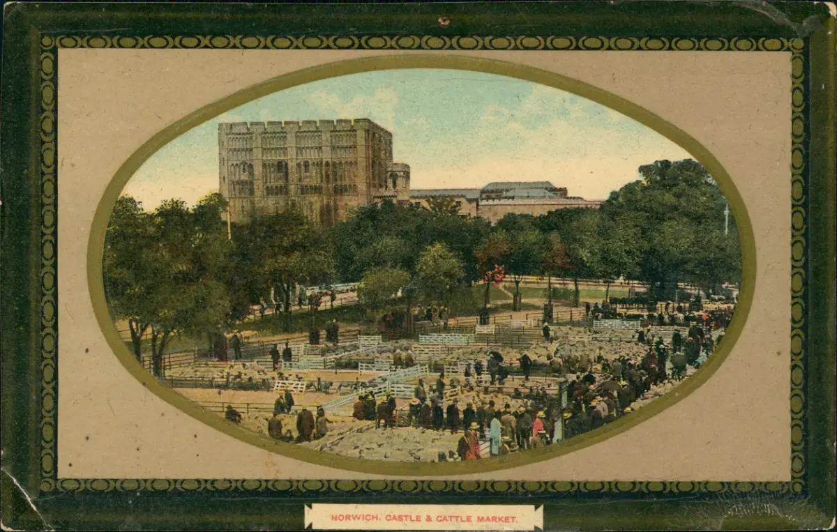 Postcard Norwich Castle & Cattle Market 1911 Passepartout