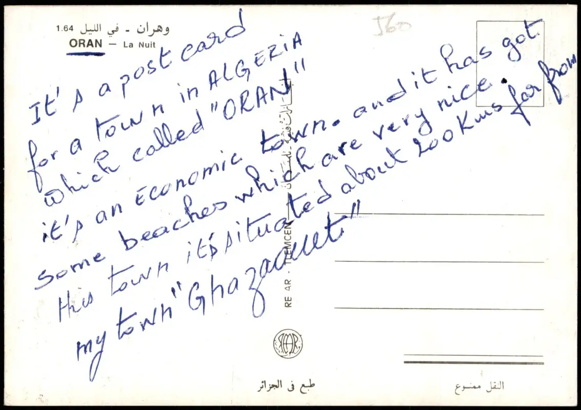 Postcard Oran (Algeria) وهران Luftbild am Abend 1972