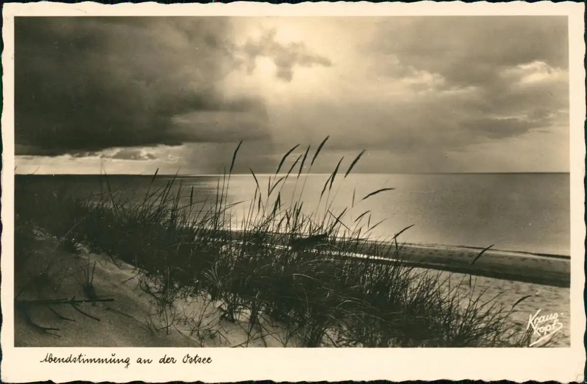 Postcard Ostpreußen (allgemein) Abendstimmung am Strand 1939 gel. Stempel Cranz