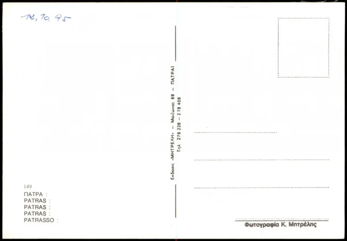 Postcard Patras Patra Πάτρα 3 Bild Stadt Platz Denkmal 1995