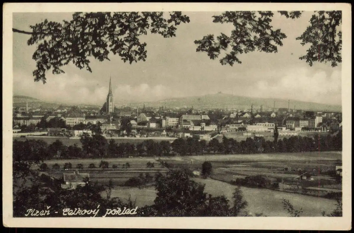 Postcard Pilsen Plzeň Panorama-Ansicht 1940