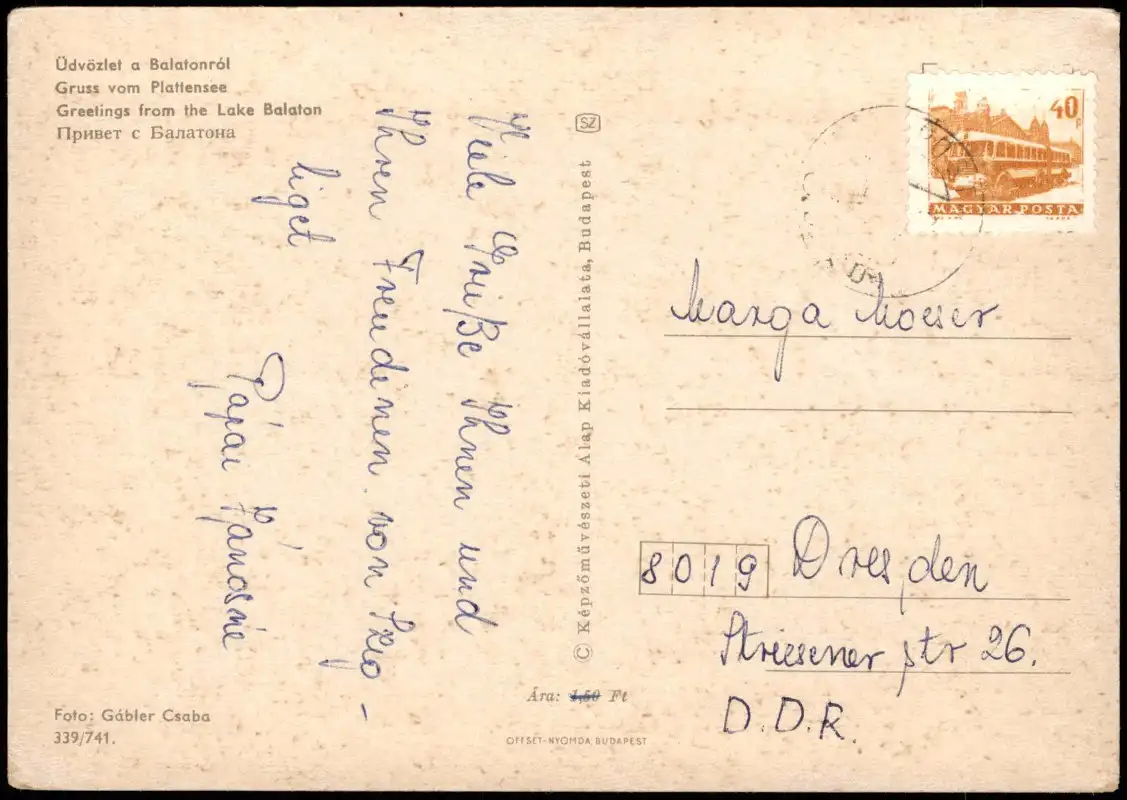 Postcard Plattensee Segelboot Üdvözlet a Balatonról Plattensee 1968