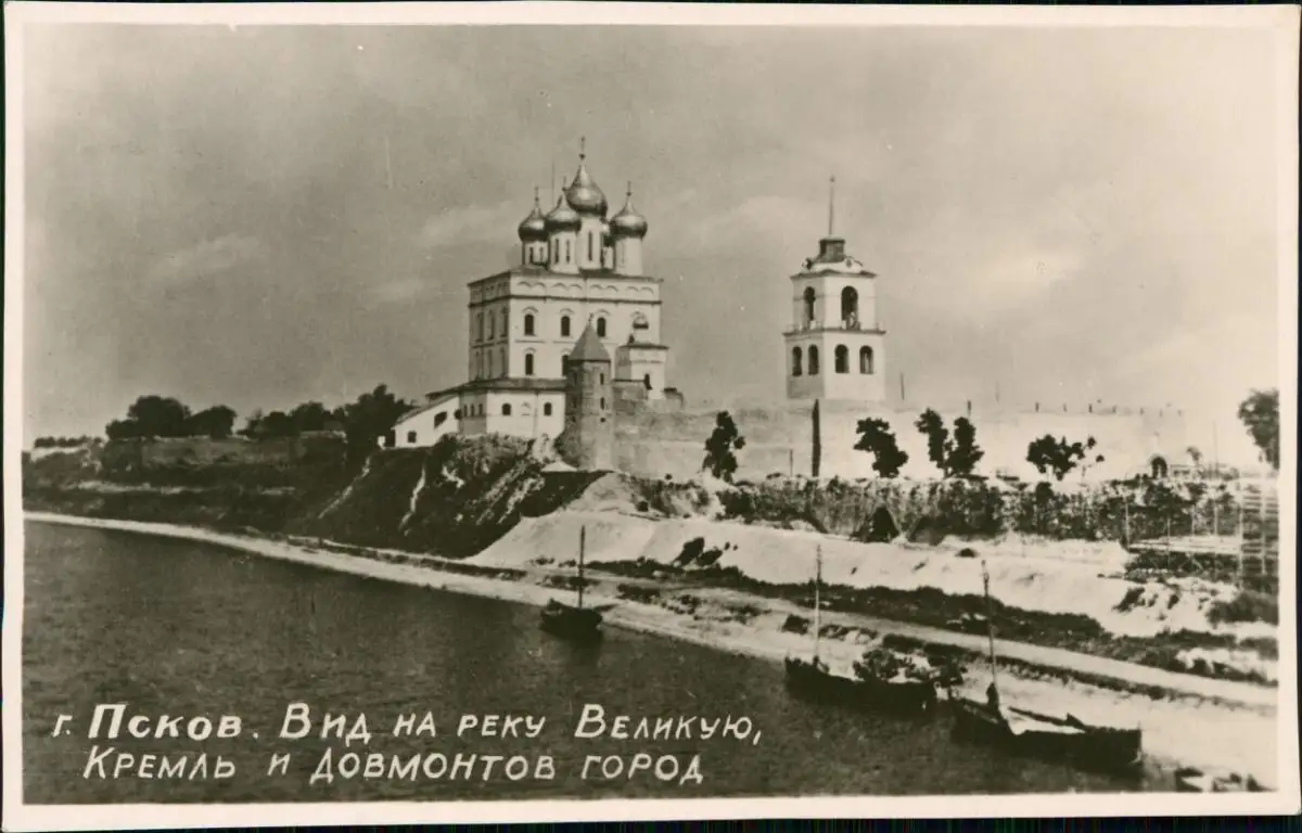Postcard Pleskau (Pleskow) Pskow Псков Flußpartie Kreml 1960