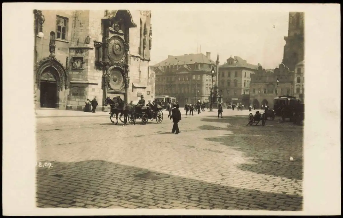 Postcard Prag Praha Altstädter Turmuhr, Pferde-Kutsche 1920