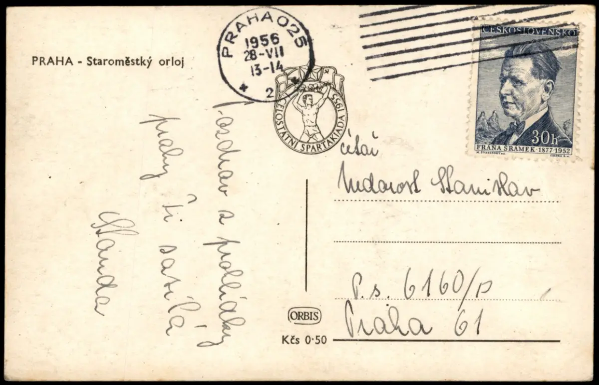 Postcard Prag Praha Altstädter Turmuhr Staroměstký orloj 1956
