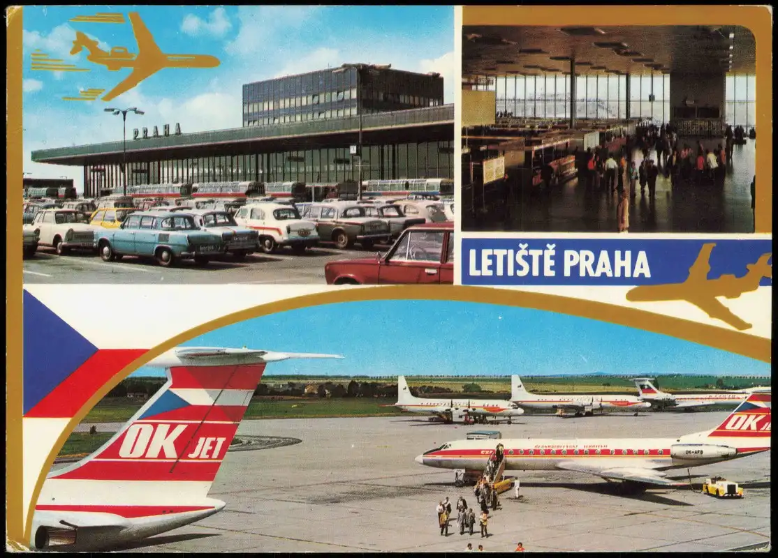 Postcard Prag Praha Flughafen LETIŠTĚ PRAHA (Airport) 1976
