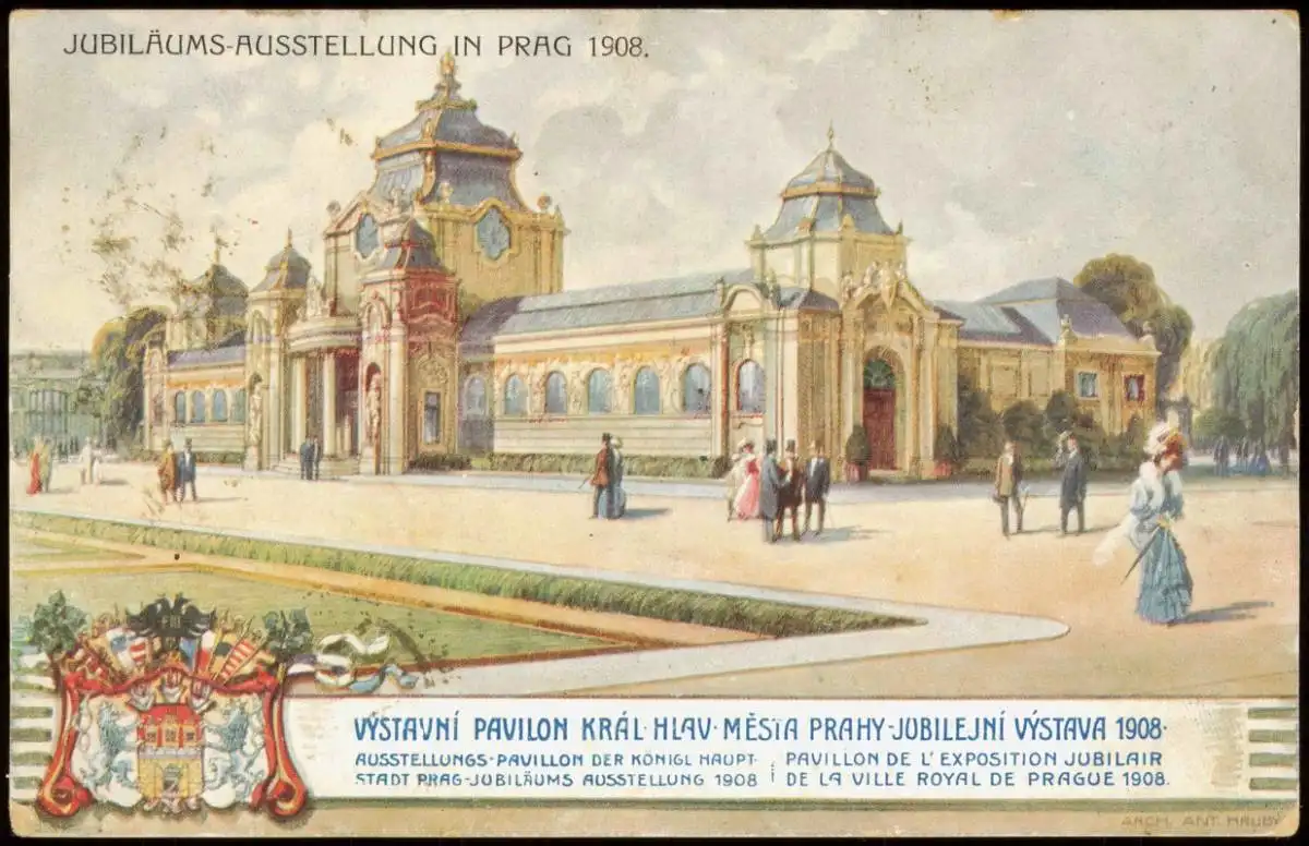 Postcard Prag Praha JUBILÄUMS-AUSSTELLUNG Künstlerkarte 1908