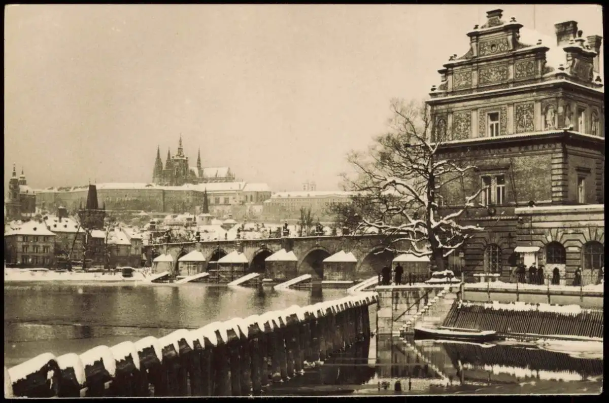 Postcard Prag Praha Karlův most/Karlsbrücke zur Weihnachtszeit 1965