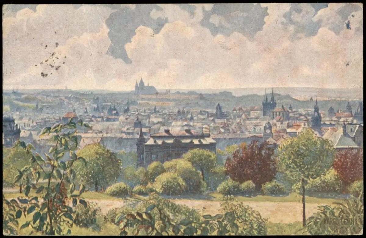 Postcard Prag Praha Pohled od Riegrových sadů, Stadt-Panorama 1919