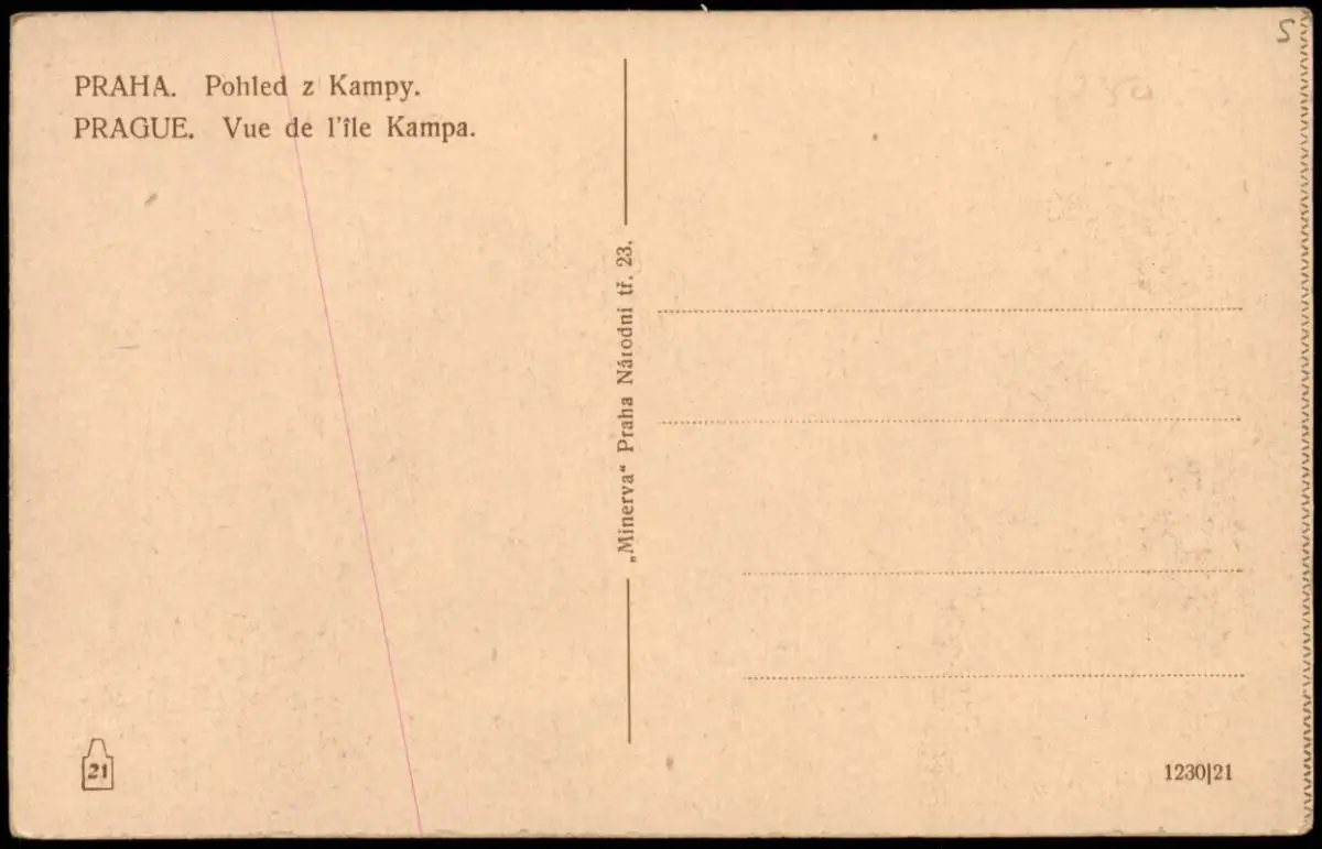 Postcard Prag Praha Pohled z Kampy PRAGUE Vue de l'île Kampa 1920
