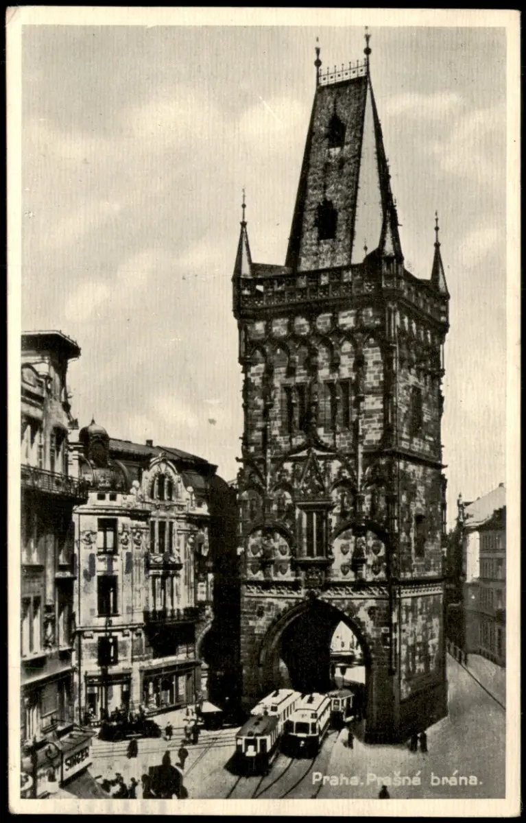 Postcard Prag Praha Prašná brána Pulverturm Tram Straßenbahn 1933